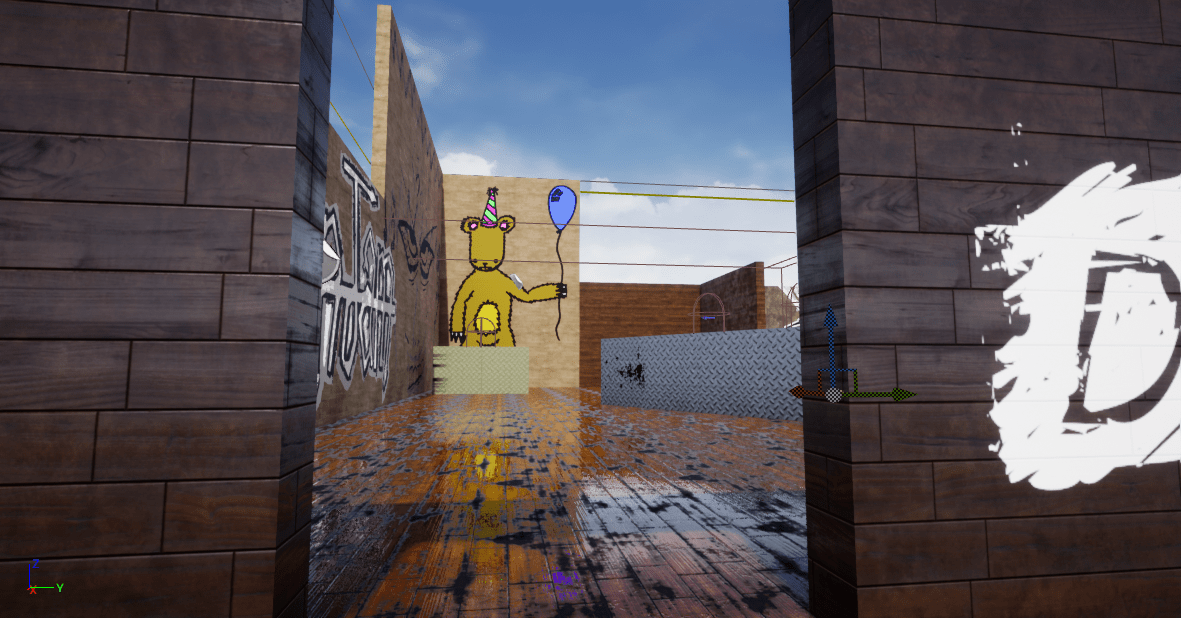 For one of my final first year pieces I created a first person shooting range environment. This level features a custom character model, a hand created animation blueprint and blendspace, hitscan weapon firing, reloading, target enemies and mobile enemies. The environment is also decorated with graffiti created from my own original drawings.